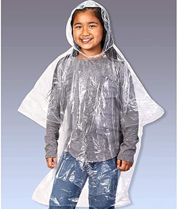 • Comes With: You will receive 10 clear ponchos with hood for girls and boys