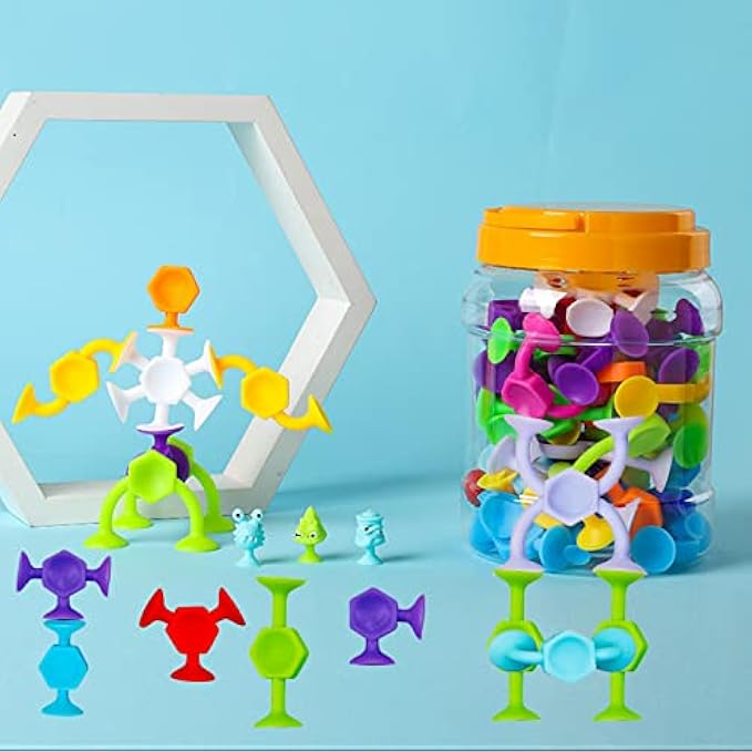 • 【Sution toys for baby】Sticky toys are the ideal suction toddler learning toys that stick to non-porous surfaces and to each other! Build, stick, connect, and pop! Break apart these little suckers for hours of fun.