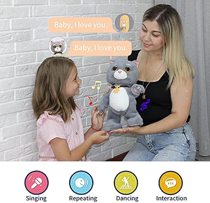 • FUNNY TOY WITH UNIQUE DESIGN: The plush interactive cat toys for 1 2 3 year old boy girl toddler will make a great companion for your little ones; And it will evoke their interest by the singing, dancing, and repeating functions. It also can perfectly inspire their language and social skills while playing.