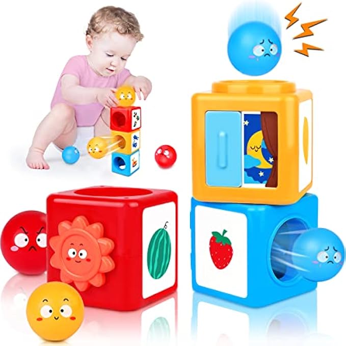 Baby Toys 6 to 12 Months - Montessori Toys for 1 Year Old Boys & Girls - Infant Stacking Toy Toddler Educational Building Blocks Ball Drop Game for 6 9 12-18 Months Babies Gift