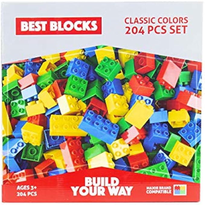 Best Blocks Big Blocks Set - Classic Colors, 204 Pieces Set - Large Building Blocks for Ages 3 and Up, Compatible with All Major Brands