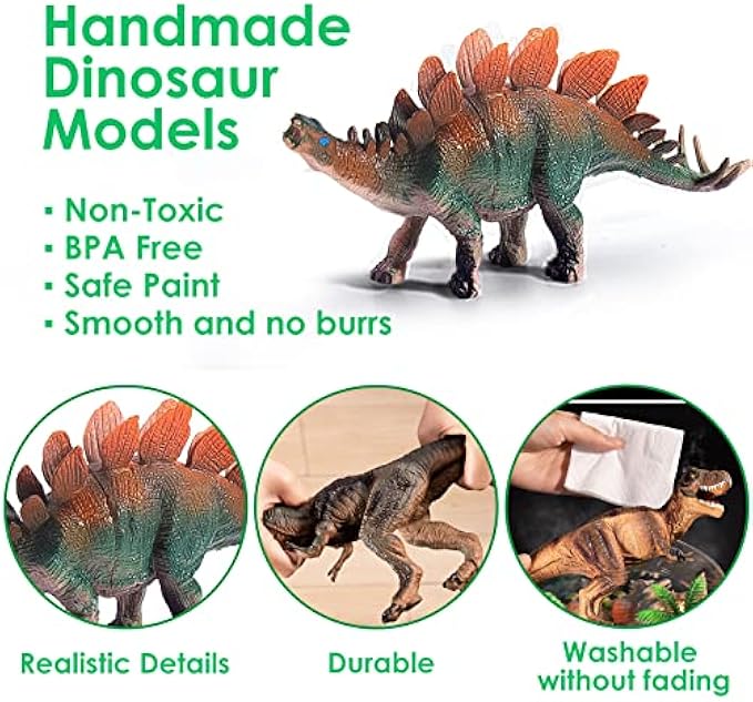 • Non-Toxic & BPA Free - Our dinosaur toys are made of high quality PVC material and hand-painted craft,which will make them more durable and realistic.Dinosaur figures with smooth edges that allow kids to play safely.