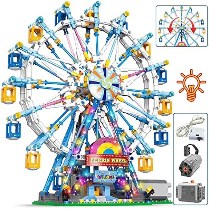 Ferris Wheel Model Building Kits with Lights, Rotating Ferris Wheel Building Blocks Set Toy,Amusement Park Building Blocks Construction Toys Set for Boys Girls Adult (879pcs)