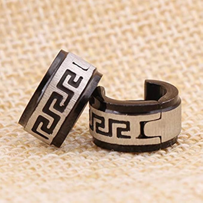 FuZhiBang Stainless Steel Hoop Earrings for Men Women Earrings Unique Greek Key (Black)