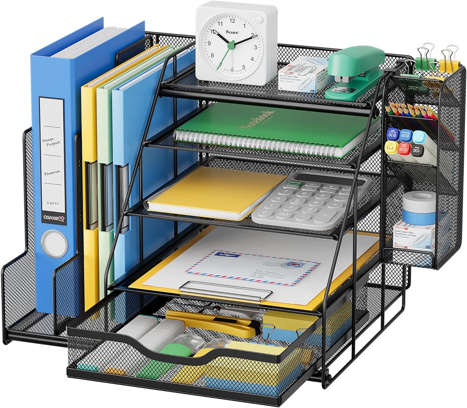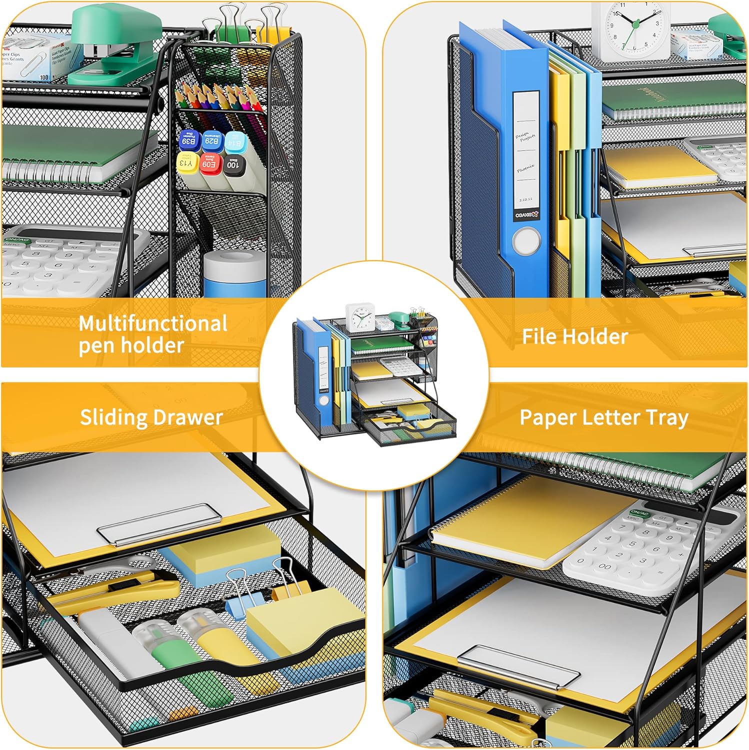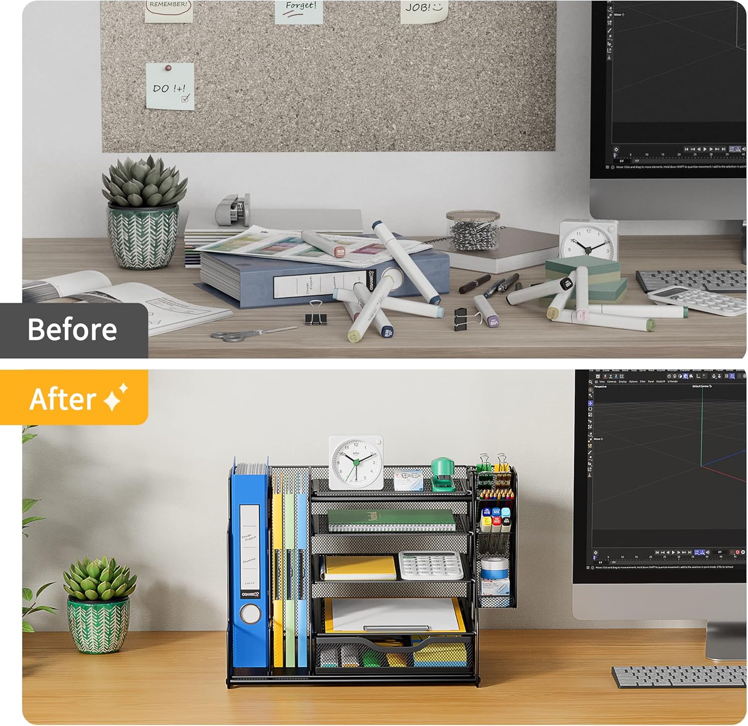 • Five Compartment Organizer: 4 horizontal paper trays and 1 vertical section, the space saving design means you have plenty of room to store all your important files, your desk will be so much more tidy.