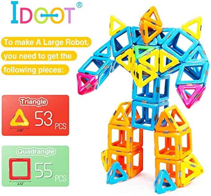 idoot Magnetic Tiles STEM Toddler Toys 52PCS Kids Magnet Building Blocks Game Educational Stacking Blocks Gift for Boys & Girls