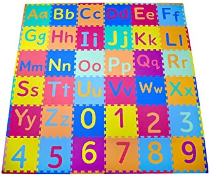 KC Cubs Soft & Safe Non-Toxic Children’s Interlocking Multicolor Exercise Puzzle Educational ABC Alphabet EVA Play Foam Mat for Kid’s Floor & Baby Nursery Room, 36 Tiles, 9 Colors, 54 Borders (EVA003)