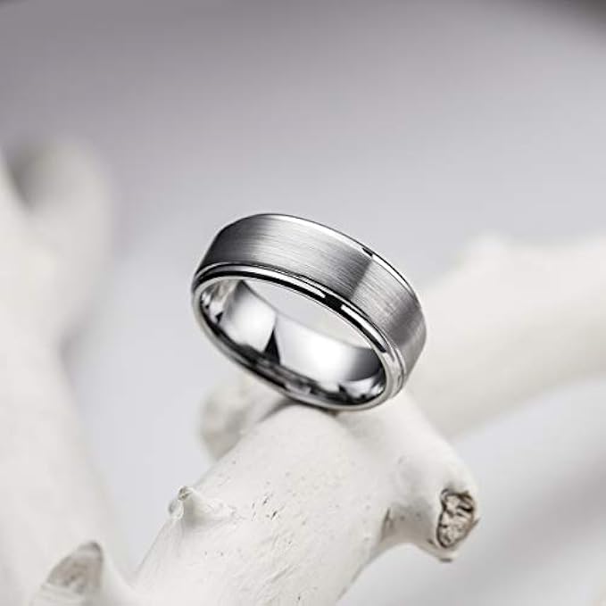 • ✔️CLASSIC DESIGN: 8mm wide Tungsten Ring for Men and Women brushed finish with beveled edge and high polished inner face