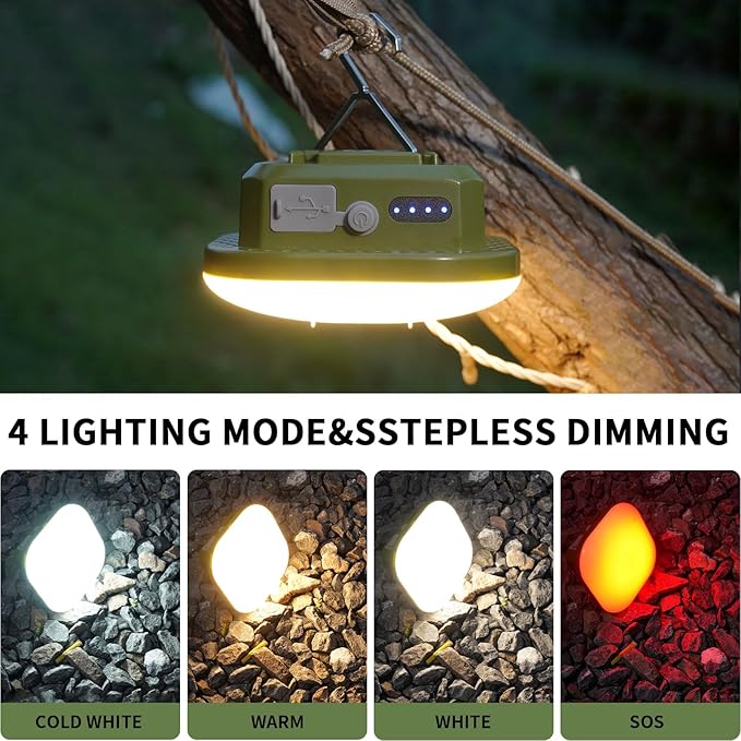 • [Hight Lumens and Brightness Adjustable]: 800Lumens Outdoor Camping Lights easily light up your pop up tent when you camp out in the wild. This tent light also has stepless dimming function which you can always adjust to the most convinence brightness to enjoy the night.