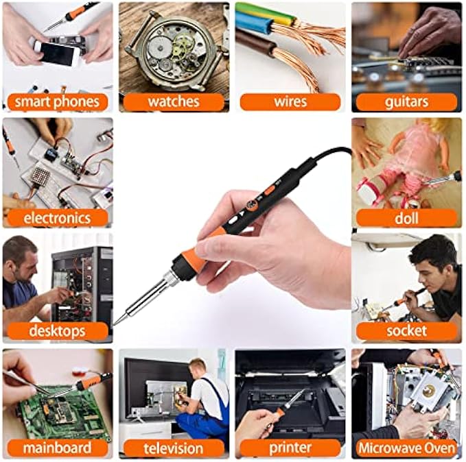 • 【Repair your electronics】The Electric soldering iron has an on/off key, can energy saving and safe soldering,It is a 110V 60W adjustable temperature Electric soldering iron,warming up faster.Six exhaust vents extend the life of the soldering iron, can effectively prevent the soldering iron from overheating.