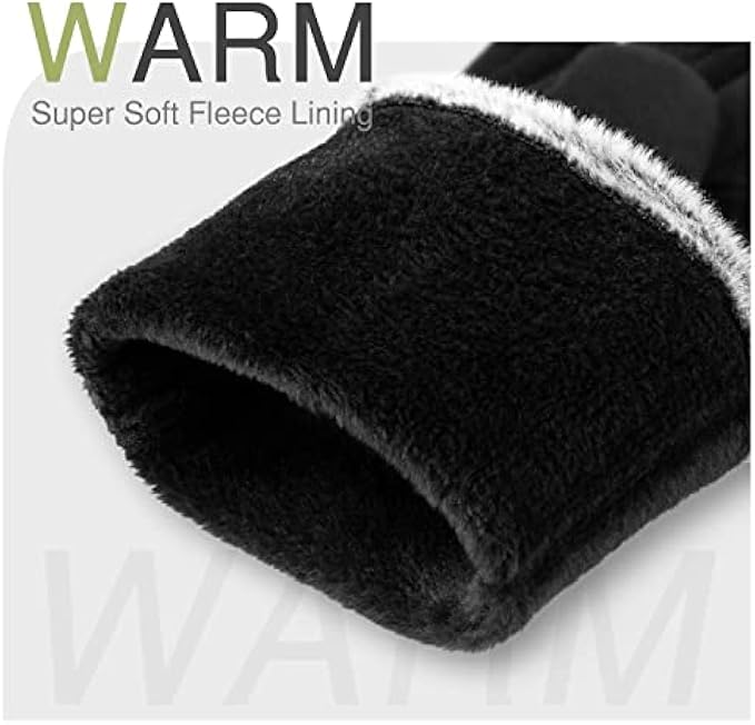 • Super Soft & Warm Material: This classic winter gloves are made of high-quality non-inverted velvet, which is a breathable and soft material, and we specifically choose dense and soft fleece as lining, that's why our gloves not only keep your hands warm, yet thin and comfortable to tuck in your coat pocket or purse with no problems.