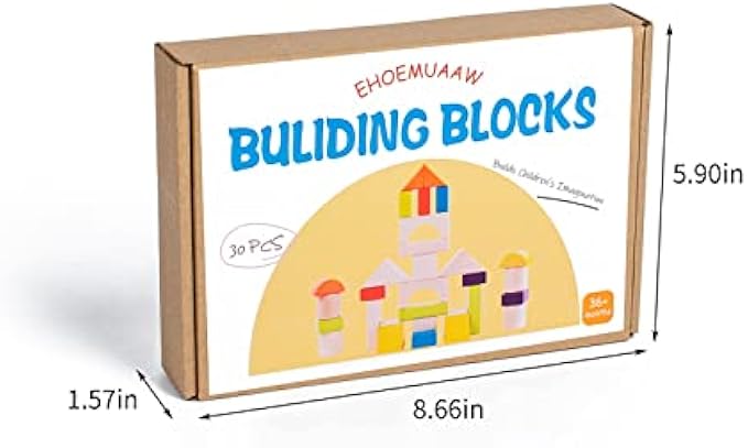 • 30 Wooden Block Set : these wooden blocks include 30 wooden block sets, 1 wooden box, packed with the box, which is easy to carry and store.